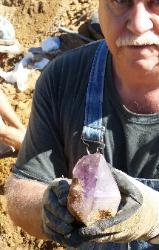 | Dig for Amethyst Crystals: Warrenton, Georgia. TBA, 2020. THERE ARE LIMITED SLOTS AVAILABLE. YOU CAN EMAIL ME TO APPLY AND REQUEST TO ATTEND THE EVENT. Registration /Application & approval required. This is on the Cedar Ridge farm near Ivy Farm. There is amethyst crystals , Quartz crystals and amethyst scepters. Some of the crystals are shiny and almost all of the crystal have a good to flawless interior. There is some light to medium facetable material here. Email me to register and apply to attend. Include your phone number in the email. (please don't email with questions about other digging dates because this page has any information about dates that I can announce). If the following link doesn't work you can get my email address in the image below. If the link works, there is no need to also use the alternate address and send two emails. There may be a delay in answering because I wear a lot of hats and am juggling a lot of things. CLICK TO EMAIL ME PHOTOS OF RECENT FINDS - January 2018 $45 per person to go thru the tailings piles as the machine brings them up. This doesn't include digging in the hole on this dig but i might be able to let people depending on how things go. You get to keep what you find. See new photo link below. Please bring a release form (Release form link is below). |